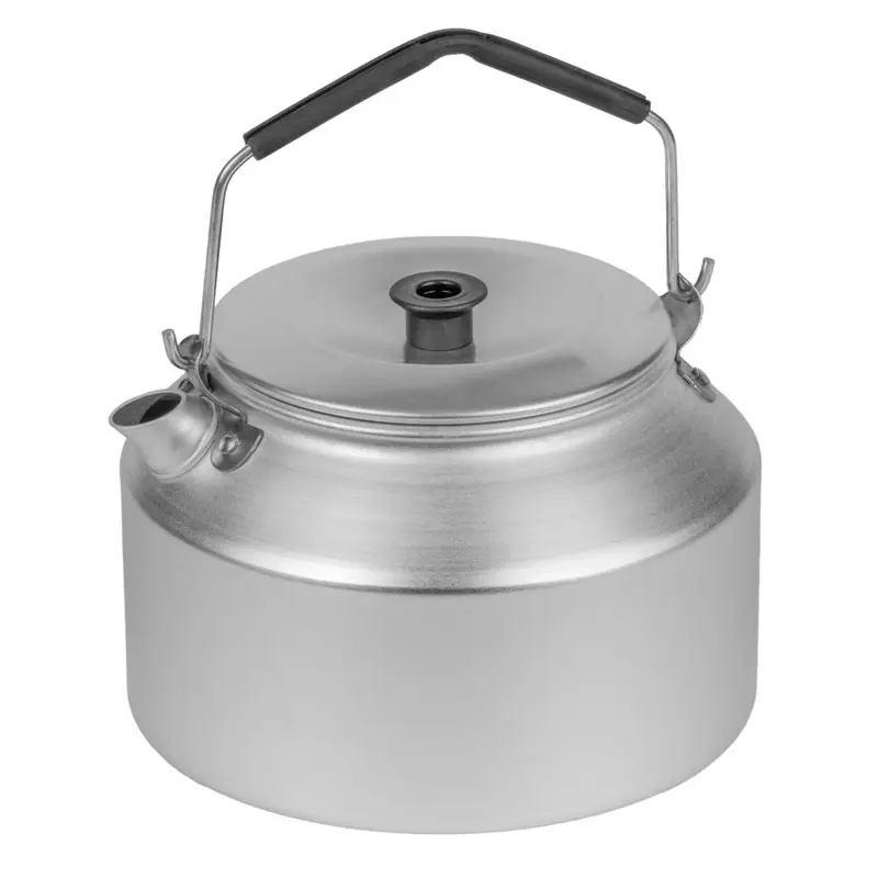 Ấm đun Trangia Kettle 245 1.4L bằng nhôm có nắp đậy. Tay cầm bằng thép và bọc nhựa có thể tháo rời. Thiết thực khi bạn muốn sử dụng đun nấu trên ngọn lửa.