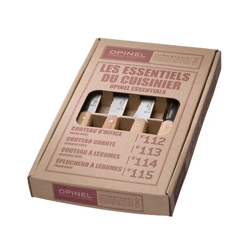 Bộ 4 dao gọt Opinel Essentials Small Kitchen Knife gồm: Dao đa năng No.112, Dao răng cưa No.113, Dao gọt rau No.114, Dao gọt vỏ No.115