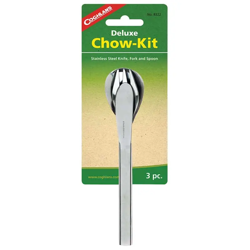 Bộ dao muỗng nĩa Coghlans Deluxe Chow Kit, bằng thép không gỉ, gồm 3 món. Xếp trượt cùng nhau để lưu trữ dễ dàng.