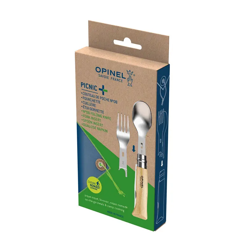 Bộ dao muỗng nĩa Opinel Picnic+ No.8 thích hợp cho các bữa ăn ngoài trời (dã ngoại, picnic, cắm trại, v.v.) cũng như cho các bữa ăn khi di chuyển tại văn phòng!