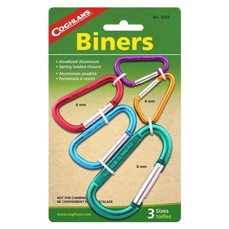 Bộ móc khóa Coghlans Multi-Pack Carabiners 5 cái được làm từ nhôm anodized.