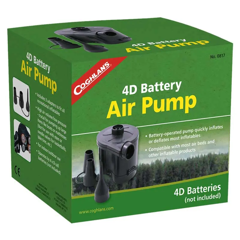 Bơm hơi pin Coghlans 4D Battery Air Pump làm cho bể bơi và đồ chơi bơm hơi phồng lên dễ dàng.