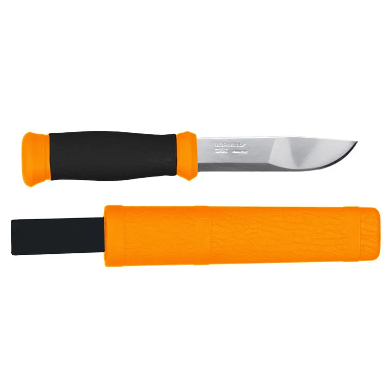 Đây là một con dao toàn diện hạng nhất với kiểu lưỡi được mài vát ở đầu lưỡi dao. Một lựa chọn tối ưu cho dòng dao săn. Thép không gỉ của Thụy Điển có chất lượng cao nhất, được trui cứng và xử lý tại nhà máy Morakniv ngay tại Mora, theo công thức bí mật của họ. Dao Morakniv Mora 2000 Stainless Steel có tay cầm bằng cao su TPE có vân gia cố giúp ma sát tốt hơn, an toàn và chắc chắn hơn.