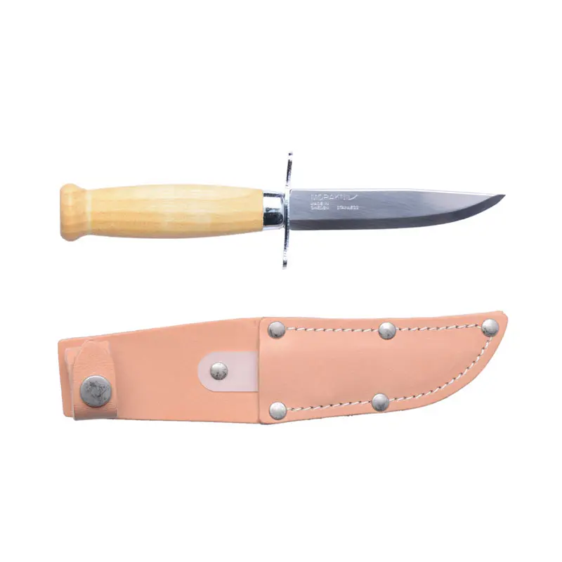 Dao Morakniv Scout 39 Stainless Steel có một lưỡi ngắn làm bằng thép không gỉ của Thụy Điển và tay cầm bằng gỗ bạch dương thích hợp với bàn tay nhỏ hơn, dễ sử dụng và trơn tru. Kèm bao da giữ cho cả con dao và người sử dụng nó an toàn khi không sử dụng dao.