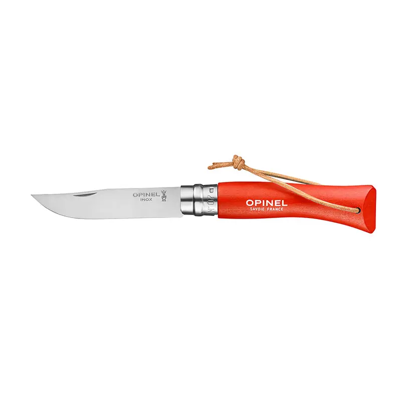 Dao Opinel Bushwhacker No.7 Colored Stainless Steel với tay cầm có lỗ xỏ dây treo thuận tiện. Lưỡi thép không gỉ chống ăn mòn. Tay cầm thoải mái. Hệ thống khóa an toàn Virobloc®, chặn lưỡi cắt khi mở và đóng.