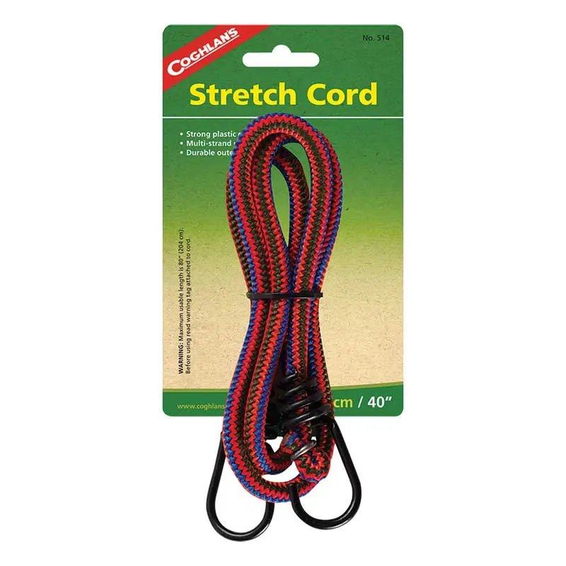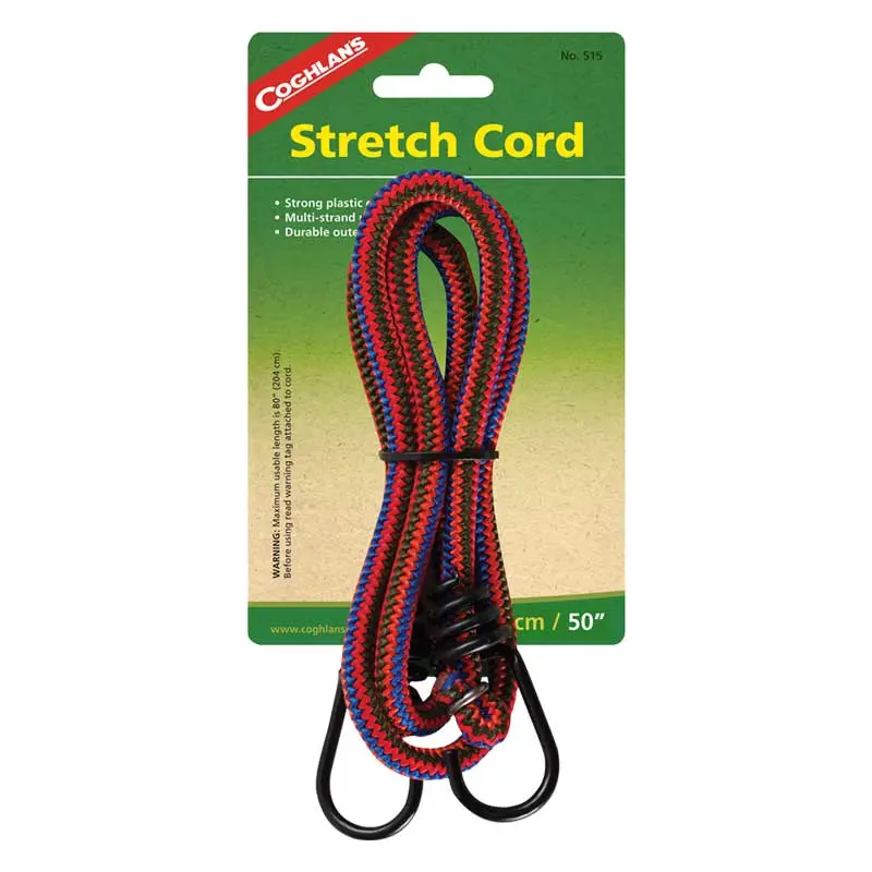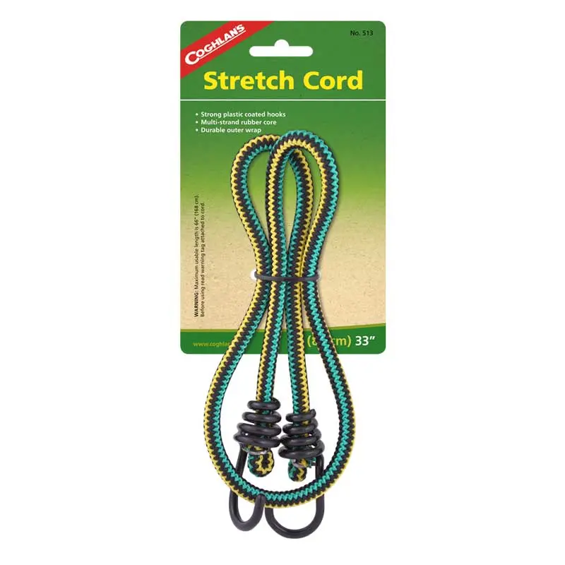 Dây ràng Coghlans Stretch Cord chắc chắn có các móc bọc nhựa ở mỗi đầu sẽ không bị lỏng khi di chuyển.