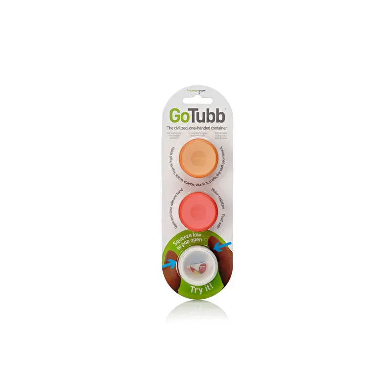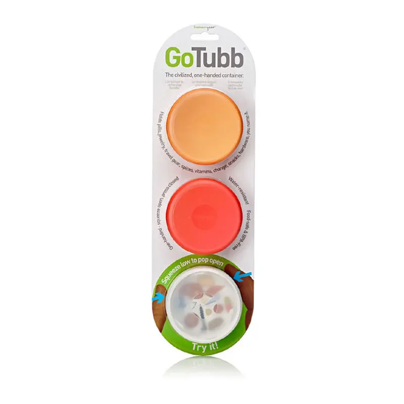 GoTubbs hoạt động hiệu quả với thuốc viên, đồ ăn văt, vitamin, tiền lẻ, bạn có thể ghi tên cho nó. Khu vực ghi nhãn có thiết kế lõm vào trong để không bị cọ xát và phần trên trong suốt cho phép bạn nhìn thấy những gì bên trong mà không cần mở chúng ra.
