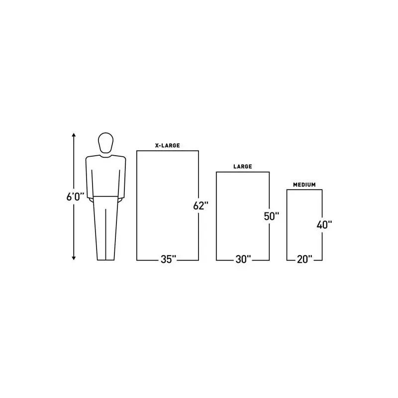 Kích thước: 51cm x 102cm / 20″ x 40″ (M); 76cm x 127cm / 30″ x 50″ (L) và 90cm x 158cm / 35″ x 62″ (XL)