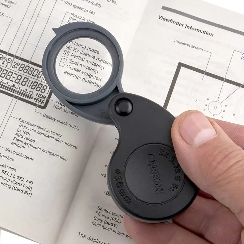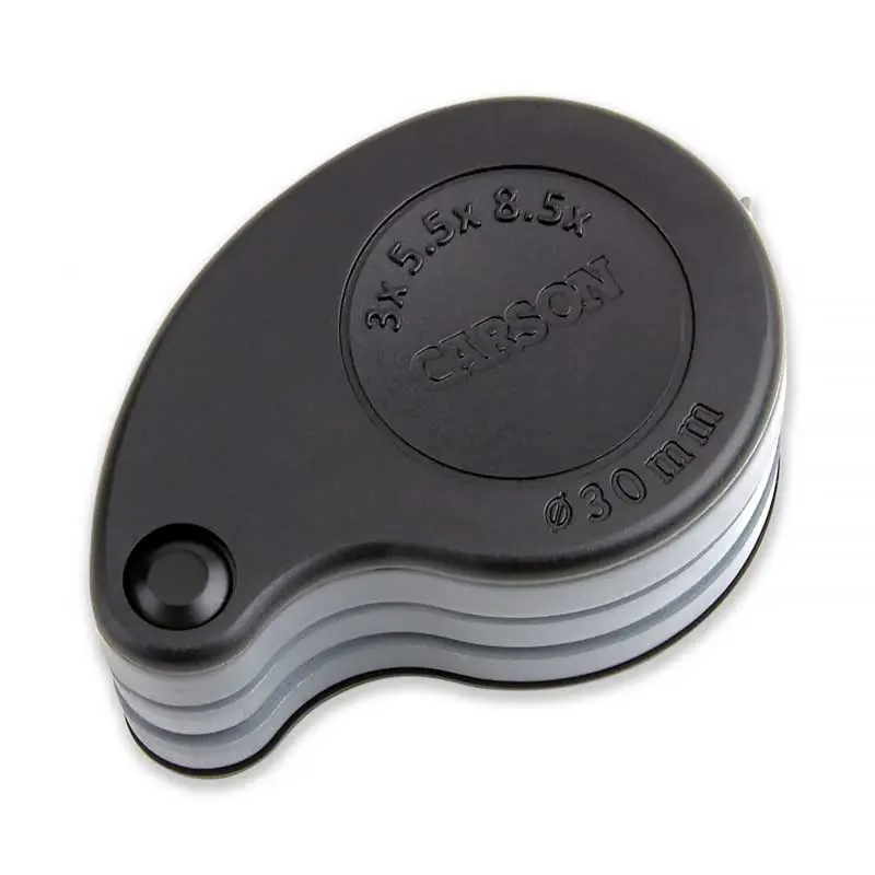 Kính lúp Carson TriView 3x/6x/9x Folding Loupe Magnifier TV-36 của Carson Optical là một Kính lúp gấp nhỏ gọn, di động với độ phóng đại 3x-9x. Mỗi ống kính có độ phóng đại 3x. Kết hợp hai thấu kính với nhau để tạo độ phóng đại 6 lần hoặc ba thấu kính để tạo ra độ phóng đại 9x. TriView ™ Magnifier có trọng lượng nhẹ, di động và đi kèm trong hộp bảo vệ riêng.