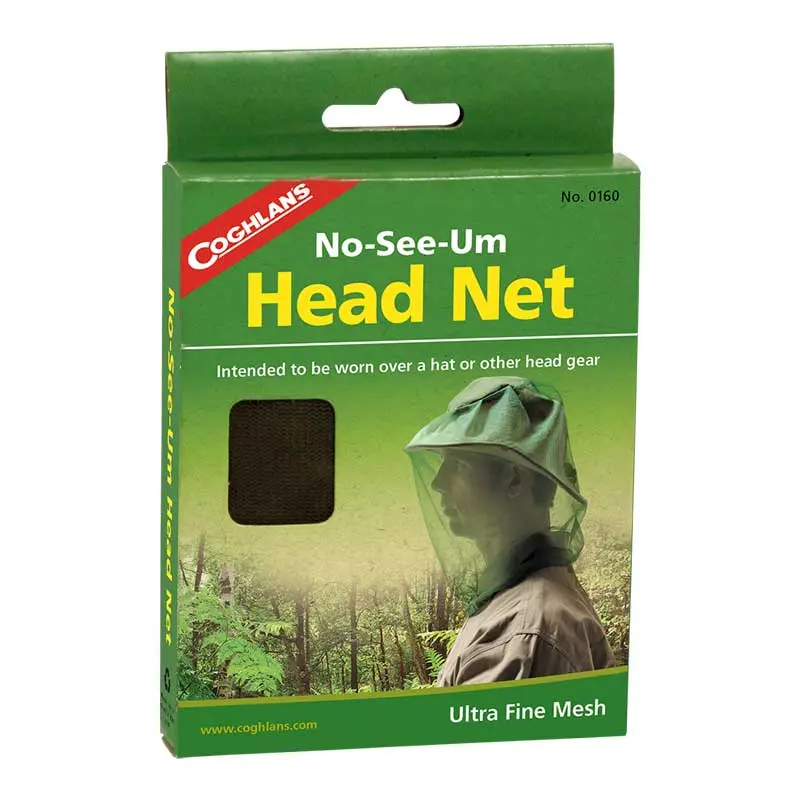 Lưới trùm đầu Coghlans No-see-um Head Net vừa vặn với hầu hết các loại mũ đội đầu và có dây đàn hồi ở cổ.