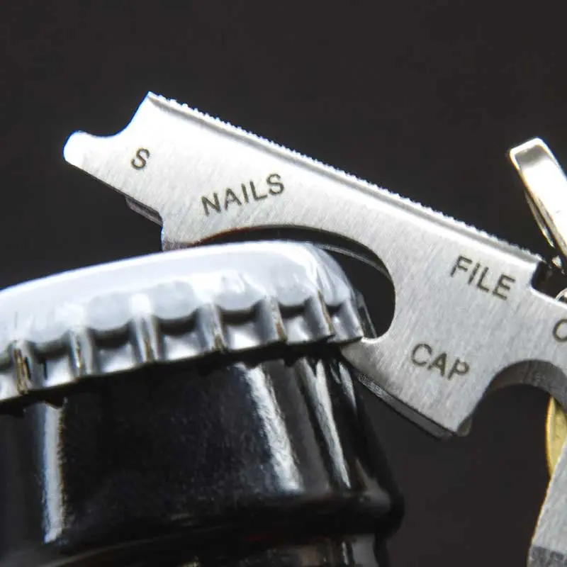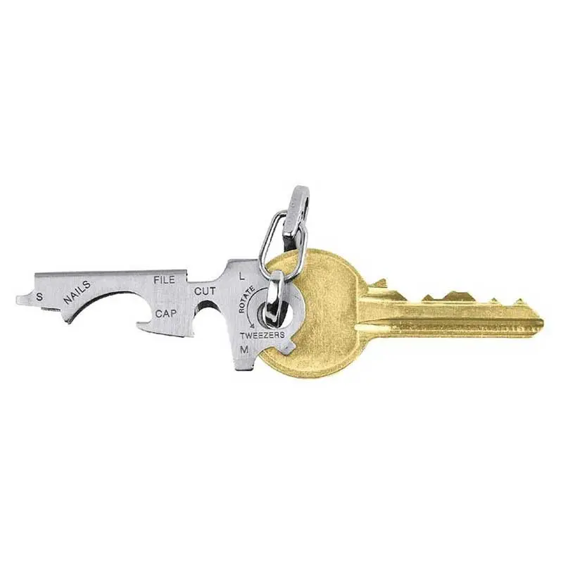 Công cụ đa năng nhỏ hữu ích này không chiếm thêm chỗ trong túi của bạn nhưng vẫn có 8 công cụ hoạt động đầy đủ trong đó. Bao gồm dụng cụ mở chai, làm sạch móng, dũa móng tay, dao cắt dây, tua vít dẹp lớn, vít vừa và vít kính mắt. Cuối cùng chỉ cần tách chìa khóa của bạn ra và sử dụng một cặp nhíp ở phía trên,