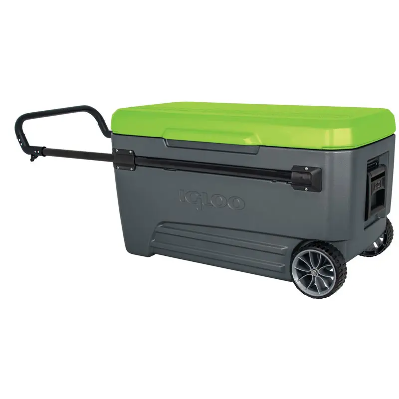 Thùng đựng đá Igloo Glide 104L được thiết kế chuyên nghiệp với tay kéo trượt và khóa ngang giúp giảm 50% tải trọng của thùng khi nâng. Thùng giữ lạnh có bánh xe này rất dễ dàng để nâng lên và kéo đi. Thiết bị hoàn hảo bảo quản lạnh cho vận chuyển và giữ lạnh cho hoạt đổng thể thao, câu cá…