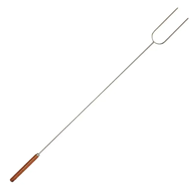 Bằng thép mạ crom và cán gỗ lạnh. Dùng như que nướng hay xiên xúc xích, nĩa cắm trại.